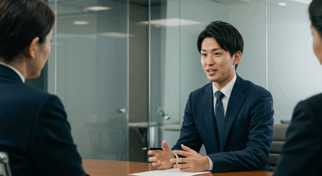 一次二次面接では主に人事担当者や現場の先輩社員が面接官を務め、「この人と一緒に働けるか」「基本的なスキルは身についているか」といった観点で評価されます。